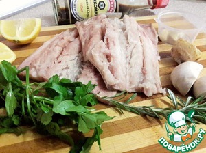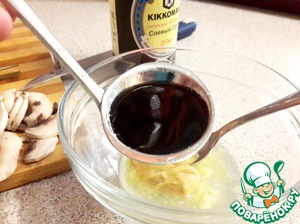 В мисочке смешать натертый имбирь, горчицу, мелко нарезанную петрушку, черный перец (щепотку), сок лимона и соевый соус ТМ Киккоман.