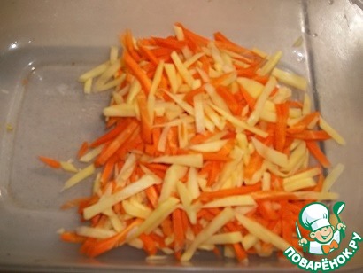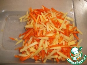 Морковь и картофель очистить, натереть на крупной корейской терке или нарезать тоненькими брусочками.