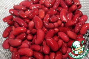 Фасоль замочить минимум на 4 часа, затем отварить до готовности. Красный лук мелко порезать немного посолить, перемешать и оставить на 10 минут (что бы ушла горечь).