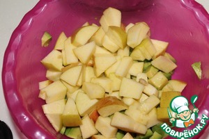 Авокадо и яблоко порезать кубиками, полить лимонным соком и перемешать (так они не потемнеют).