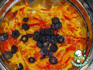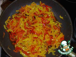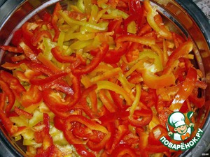 Перчик чистим, нарезаем соломкой (чем тоньше – тем вкусней).
