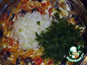 Маслины нарезаем колечками.