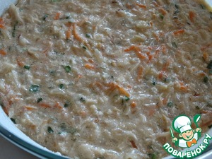 Смешиваем овощную массу с икряной и выкладываем в форму для запекания.