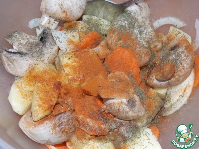 Ингредиенты для «Грибы, запечённые с овощами»:
