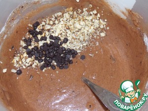 Добавить измельчённые орехи и шоколадные капли.