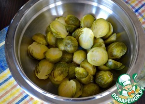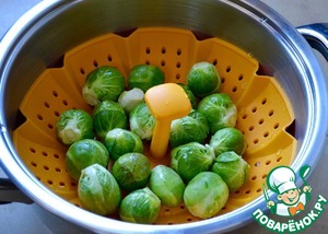 Брюссельскую капусту вымыть, снять самые верхние листики и 15 минут готовить на пару.