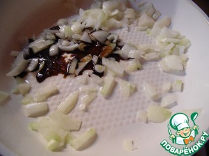 Перловку замочить на ночь, отварить в подсоленной воде до готовности. Лук мелко нашинковать, чеснок измельчить. Овощи обжарить на растительном масле ТМ "Олейна"до прозрачности.