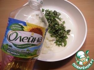 Лук и мяту мелко нашинковать, чеснок измельчить. Обжарить на растительном масле ТМ "Олейна" 3-4 минуты.