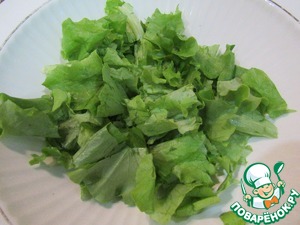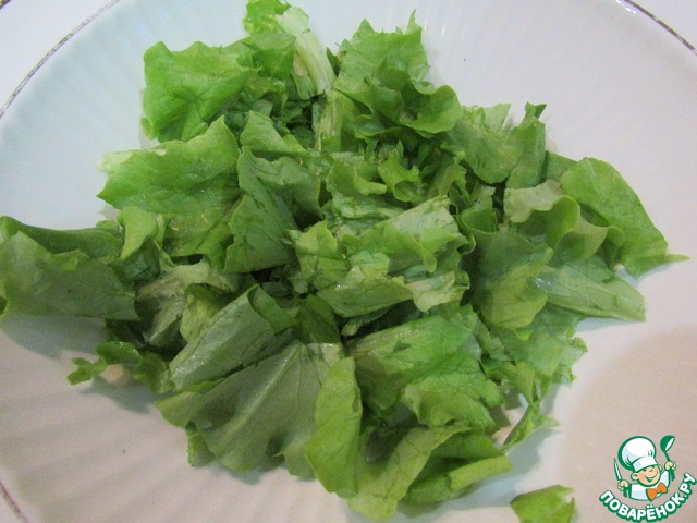 Салатные листья крупно рвем. |
