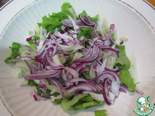 - Листья салата / Салат (я использовала "Старфайтер", но можно любой, например, "Айсберг" или салатный микс.) — 1 пуч.
