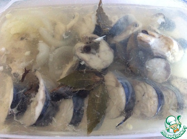 Прокипятить 1 минуту, влить 2 ст. ложки уксуса и сразу залить горячим маринадом рыбу.