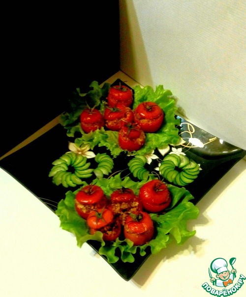 Предлагаю Вам на обед вкусные фаршированные помидоры. Они достойно украсят стол даже в праздничный день. Будьте готовы, что те, кто не соблюдают пост, могут и на вашу половину претендовать))) Угощайтесь!