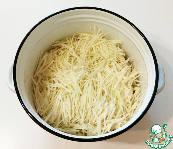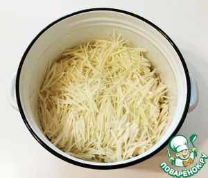 Итак, самое долгое - это нашинковать капусту. Сложить в большую емкость для удобного перемешивания. -