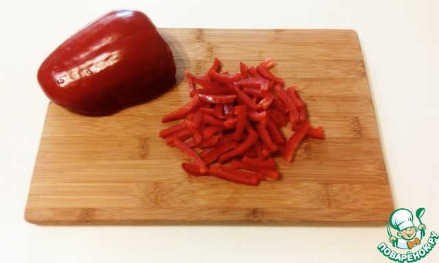 Сладкий перец нарезать полосками.