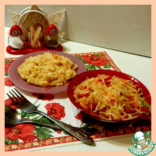 Хочу поделиться с вами дружеским тандемом овощей, которые хорошо гармонируют с кашей "дружба". Салат отлично хранится в холодильнике не один день. Готовится все очень просто и легко. Друзья-поварята, приглашаю на огонек.