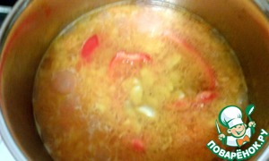 К готовому картофелю добавить спассерованные и запеченные овощи, перец молотый, проверить на соль. Довести до кипения и через две минуты выключить.