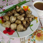 Подавать грибы с соусом в горячем или теплом виде. Остывшие они тоже вкусные, но из них вытекает очень много грибного сока, вкуснее, когда весь сок попадает еще горячим или теплым в рот.