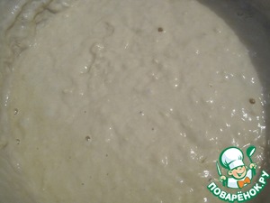 В подогретой воде растворяем соль, сахар, дрожжи. Добавляем муку.