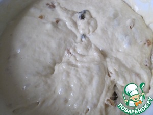 Сухофрукты смешиваем с тестом и оставляем на 1 час для подъема.