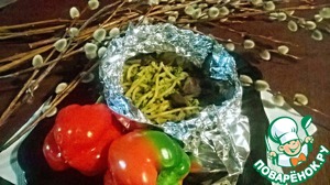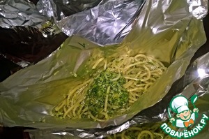 Сделать из фольги конвертики. В них положить спагетти, соус и грибы