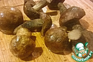 Грибы разморозить, разрезать каждый на 4 части и обжарить на растительном масле "Олейна"