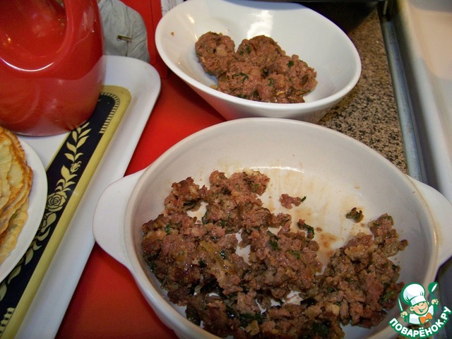 Добавить к обжаренным блинам клёцки и аккуратно перемешать.