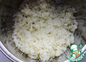 На сковороде разогреть 1 ст. л. масла и обжарить лук (приправленный солью и перцем) до золотистого цвета. Дать остыть.