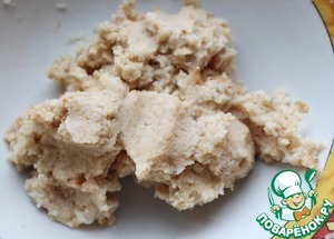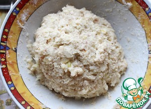 Смешать капусту, батон и лук, добавить соль, перец и муку. Количество муки регулируйте по своему усмотрению. В оригинальном рецепте указано: 3-5 ст. л. муки. Мне понадобилось 2.5 ст. л.
