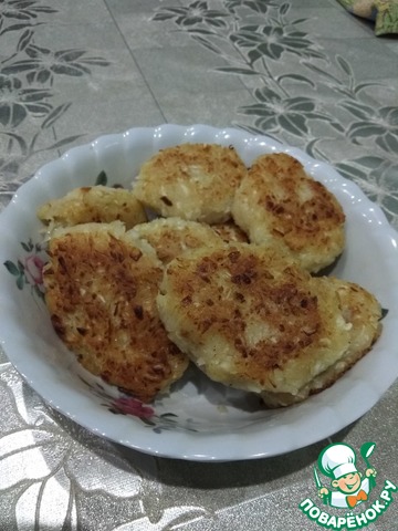 Из полученной массы слепить котлеты, обвалять в муке или панировочных сухарях и обжарить в растительном масле (2 ст. л.) на небольшом огне с обеих сторон до золотистого цвета.