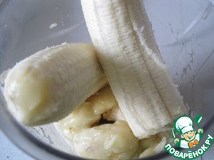 Сразу включаем духовку на 240-250*. Пока духовка разогревается приготовим тесто за 2 мин. Слегка перезревшие бананы измельчаем блендером.