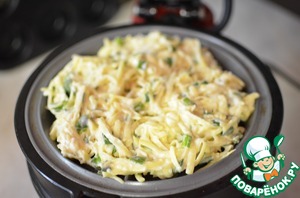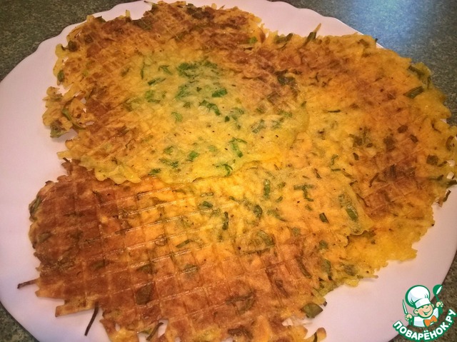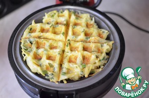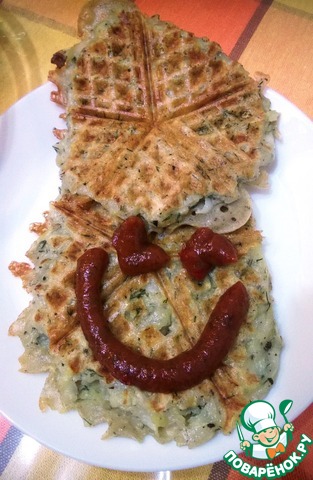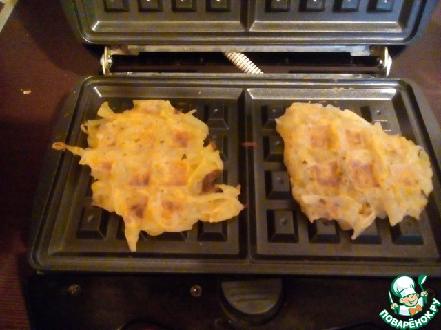 Распределить равномерно картофельную массу по поверхности вафельницы (указанного количества мне хватило на 2 выпечки, т. е. получится 8 драников).