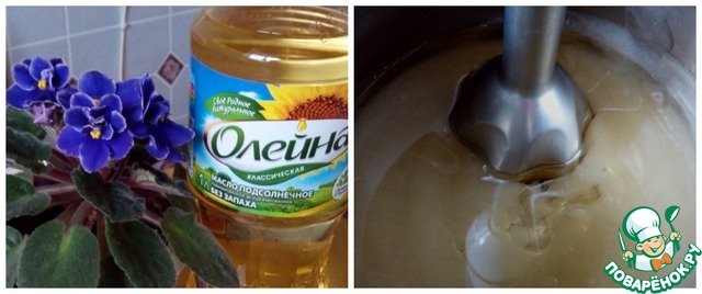 - сверху вылить растительное масло "Олейна" и хорошенько взбить блендером до однородной массы.