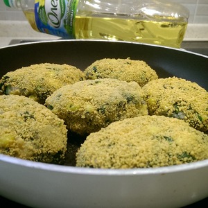 Формируем смоченными в воде руками котлетки, обваливаем в панировочных сухарях и обжариваем на растительном масле. Я использовала масло растительное ТМ "Олейна". Жарим до румяной золотистой корочки на среднем огне.