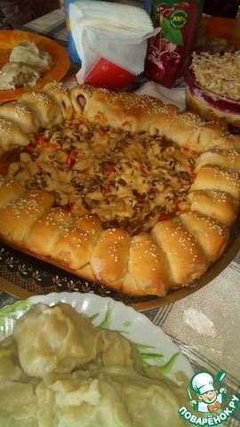 На днях попался мне в руки буклет из местного магазина еды на заказ. Рассматривая картинки, взгляд задержался на необычной пицце, а именно, привлек меня оригинальный бортик. Как обычно, образовалась бредовая идея, сделать самой такую пиццу. Погуглила, оказалось, что рецептов нет, только фото в меню из разных заведений. Отправилась экспериментировать на кухню, а что из этого получилось, заходите посмотреть в рецепт.