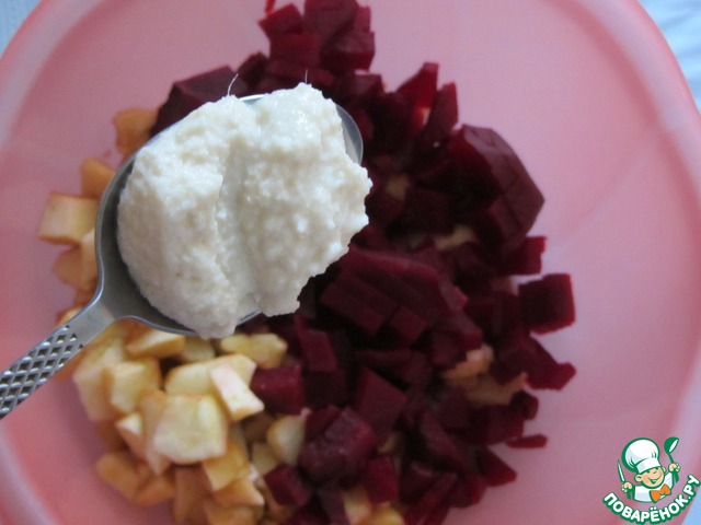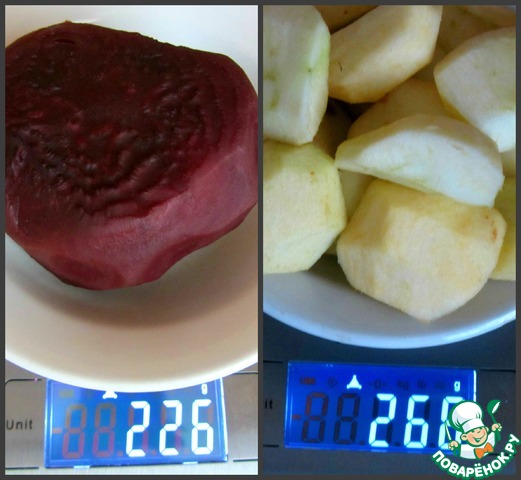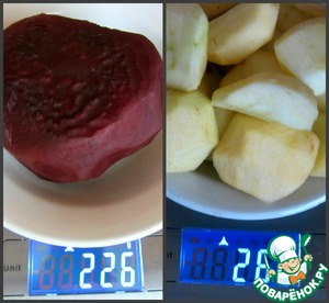 Свеклу отварить и дать остыть. Яблоки очистить от кожуры и сердцевины.