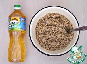 Перловую крупу отварить в большом количестве подсоленной воды. Варить до готовности, около 25 минут. Воду слить, добавить 2 ст. л. оливкового масла "Олейна", перемешать.