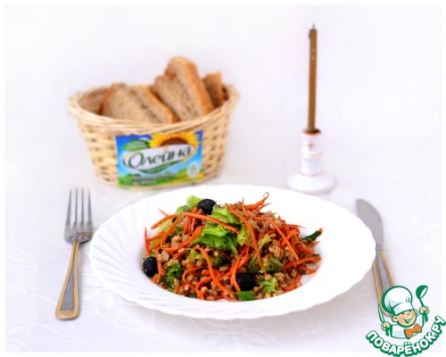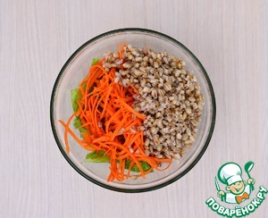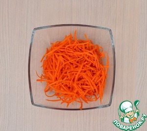 1 крупную морковь почистить, натереть на терке для моркови по-корейски.