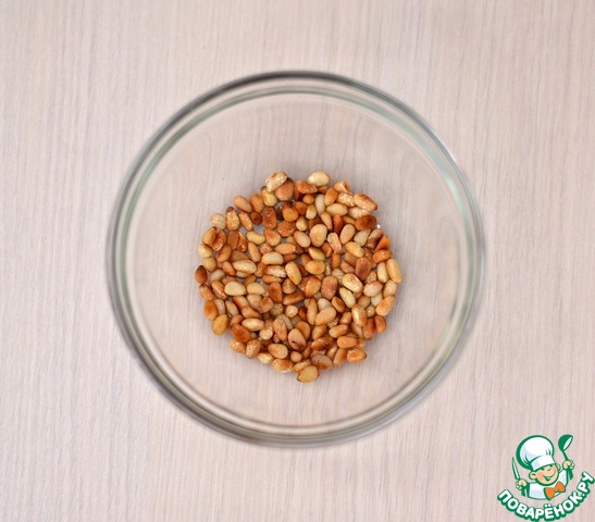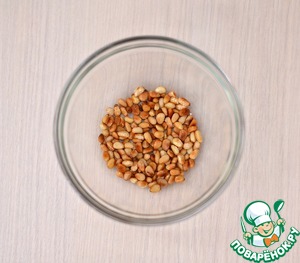 Кедровые орешки обжарить на сухой сковороде до золотистого цвета.