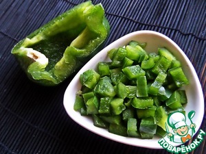Болгарский зелёный перец очистить от семечек, нарезать кубиками.