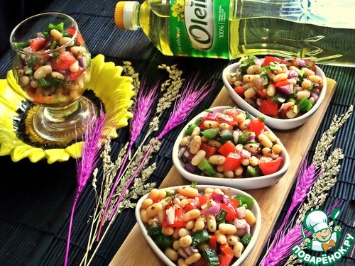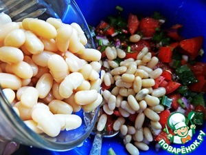 И завершаем фасолью готовой, без жидкости (можно использовать консервированную).
