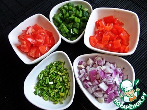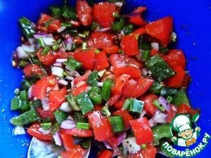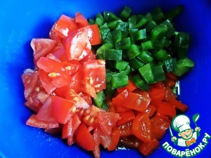 3 помидора черри или один-два обычных разрезать, вылить сок.