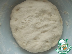 Тесто ставим в теплое место, накрыв полотенцем и даем подойти в 3 раза. Обминаем его и снова даем постоять, пока не увеличится.