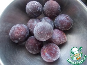 Пока тесто подходит, мы приготовим начинку. Вот такая у меня слива, я ее разморозила. Летом можно готовить со свежей.