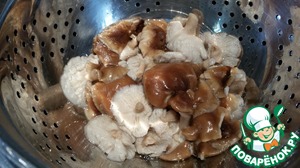 Пока варится киноа и запекается перец, занимаемся грибами. Кипятим воду, добавляем 2 ст. л. соевого соуса, закидываем грибы и варим 2-3 минуты, сливаем воду.