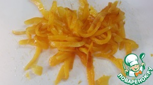 Перец чистим, нарезаем соломкой.