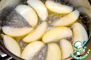 Яблоко вымыть, удалить сердцевину и нарезать на дольки. Сложить их в кастрюлю, добавить сахар и воду. Довести до кипения и варить 10 минут на медленном огне. Затем дать постоять 15 минут под крышкой, яблоки вынуть. Отвар остудить до теплого.
