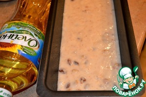 Форму смазать растительным маслом и вылить в нее тесто. Выпекать в духовке при температуре 180 С примерно 45-50 минут. Дать постоять 10-15 минут в форме затем вынуть и остудить на решетке.