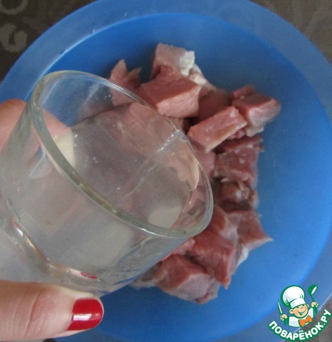 - Мясо (свинина, можно филе куриное) — 1 кг