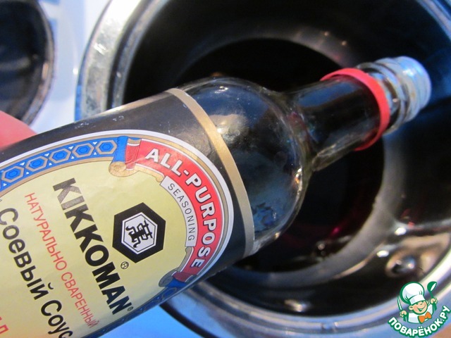 В кастрюлю с толстым дном налить соевый соус Kikkoman.
