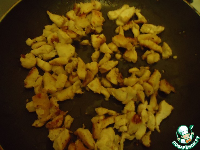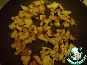 • В сковороду добавить немного масла и обжарить мясо до золотистой корочки.